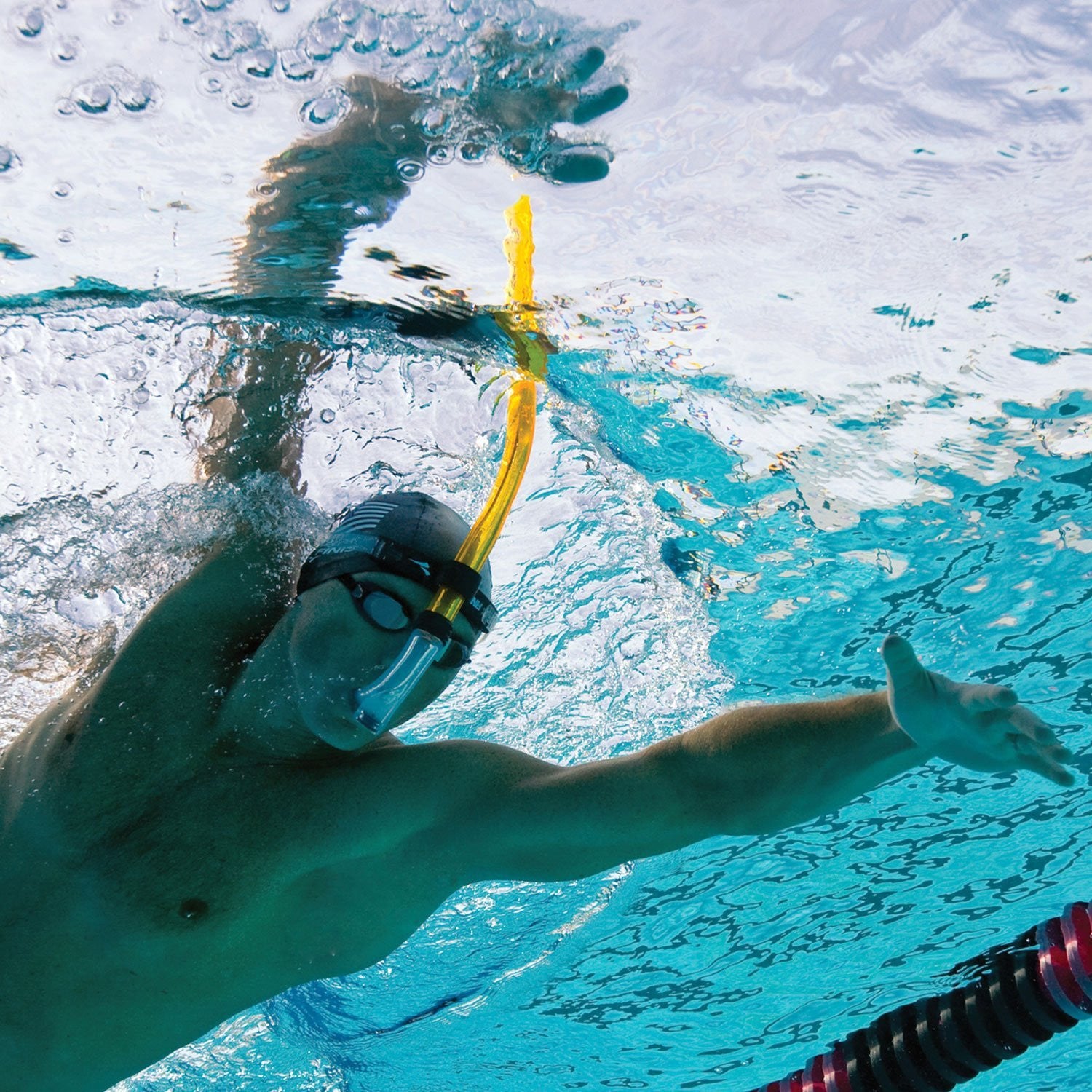 スイマーズシュノーケルは、ローリング&ストロークテクニックを正しく身につけることや、ストリームラインを正しく意識して泳ぐ為には、最適な道具です。